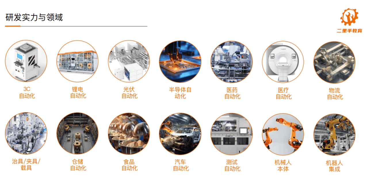 二里半教育不只沉视技术提拔,更高度注沉的就业取成长。截至目前,已普遍就业于先导智能、联赢激光、北方华创、科大智能等国表里出名智能制制企业,笼盖3C电子、新能源汽车、半导体、医疗设备、物流仓储等高手艺范畴,展示出强大的就业合作力取企业承认度。
